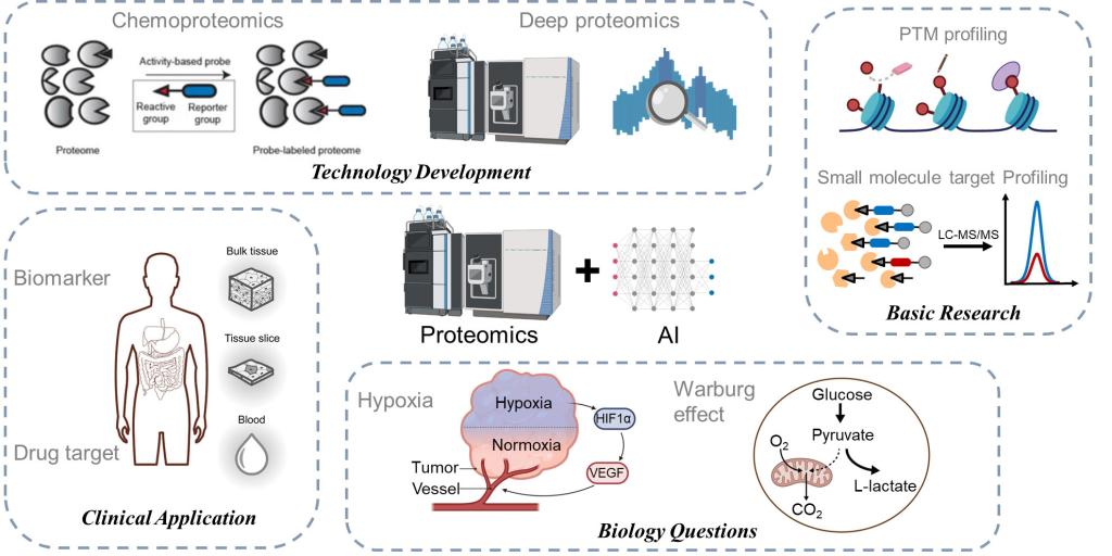 Our research group is dedicated to innovating artificial intelligence-driven proteomics methodologies and combining cutting-edge chemical and molecular biology tools to explore the functional mechanisms of post-translational modifications (PTMs) in cellular processes and disease pathogenesis. Our goal is to identify disease biomarkers and discover novel therapeutic targets and drugs. Specific research directions include: