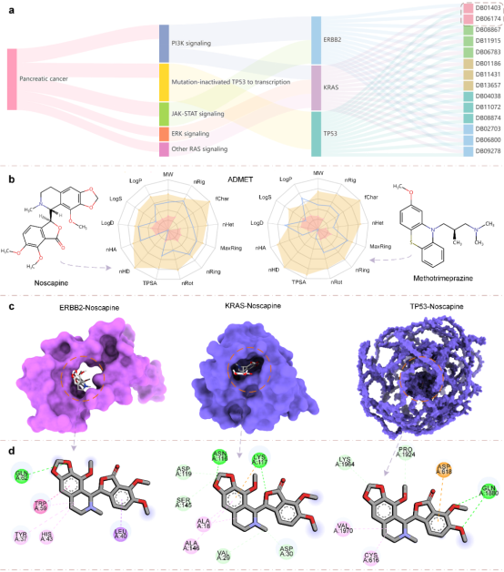 为了验证模型在实际药物研发中的应用价值,研究团队以胰腺癌为例进行了药物重定位研究。通过系统的分析,包括通路映射和药物理化性质评估,成功识别出诺司卡品等具有潜力的候选药物。分子对接结果进一步验证了预测的可靠性,展示了模型在实际药物开发中的应用前景。