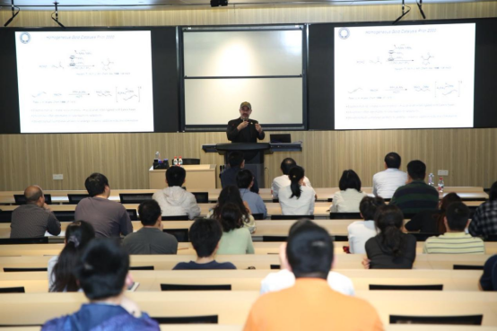 整场讲座以“反应性驱动”为核心视角,系统阐述了金配合物作为均相催化剂的开发逻辑与机制探索历程。讲座通过回溯金催化领域的关键科学假设与历史性突破,揭示了反应机理研究对新型催化体系构建的深远影响,为现场师生呈现了一场理论与应用交织的前沿科学盛宴。