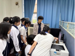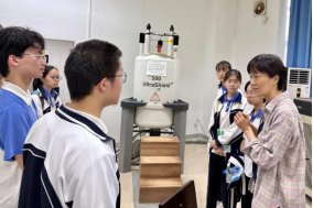 李老师带领同学们开展"核磁探秘:从共振到解析"学习,引导同学们对比分析乙醇与乙酸的氢谱,通过解读谱图信息,使同学们初步理解核磁共振技术在分子结构解析中的用途。通过观看核磁测试的过程,同学们对核磁共振实验有了直观的认识。