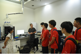 在G栋仪器室,黄杨梅老师向实践团成员们讲解了具有高分辨率的成像效果和三维重构能力的共聚焦显微镜,“小而精”且操作简便的流式细胞仪等国内领先的科研设备。同学们惊叹不已,表示这些尖端设备为科学研究提供了前所未有的可能性。