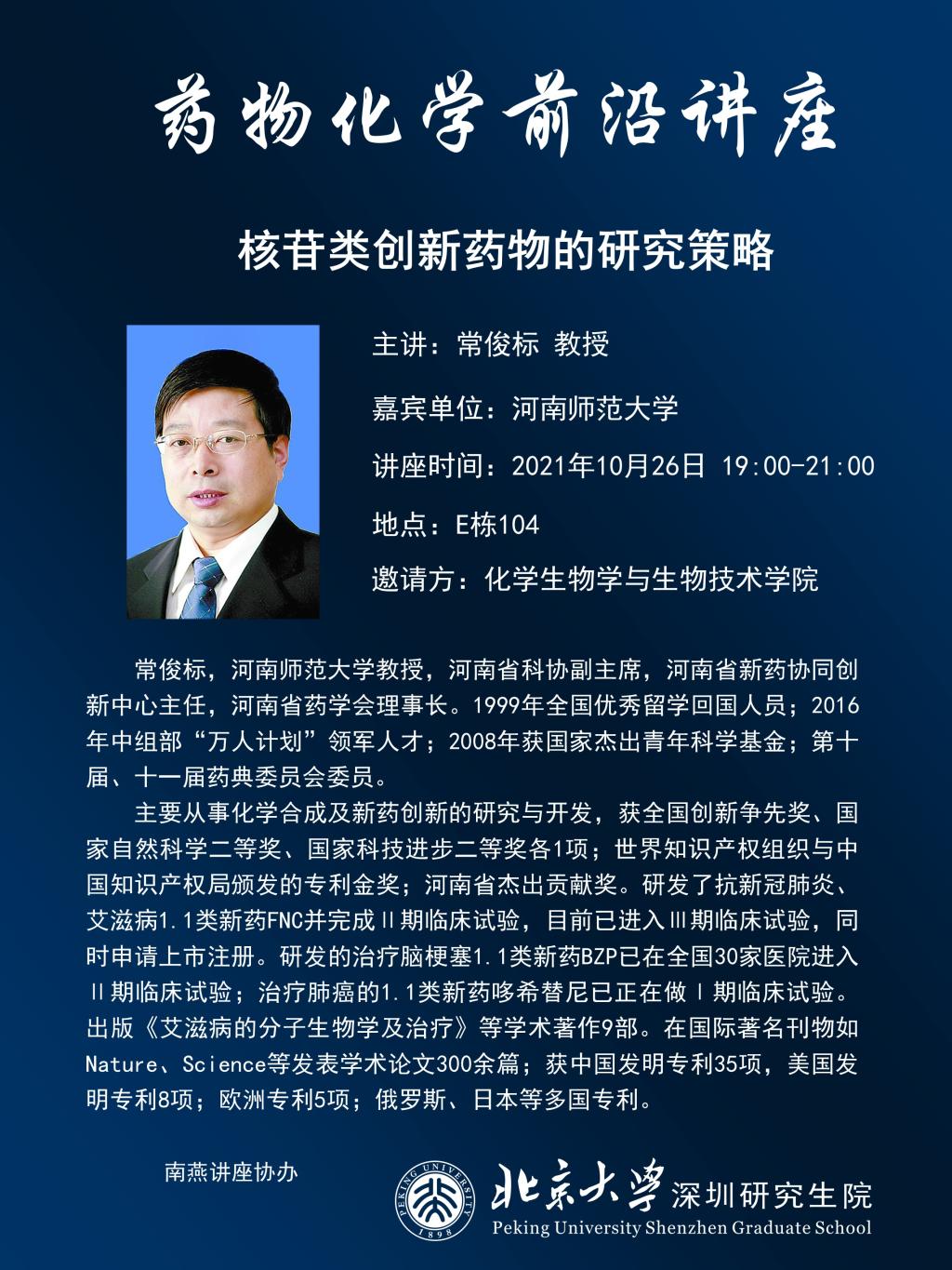 2021年10月26日(周二),翟宏斌老师邀请了河南师范大学的常俊标教授到访公司并进行药物化学前沿讲座。欢迎大家参加!