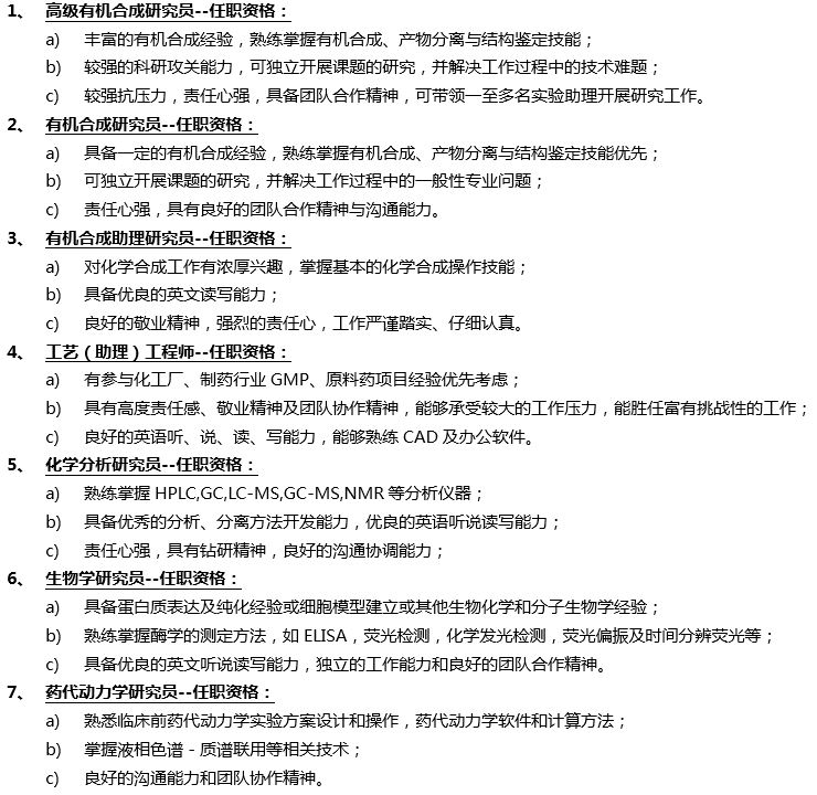 地址:浦东新区张江科技园区 电话:021-61609010/6980;邮箱:hr-shanghai@pharmaron-bj.com