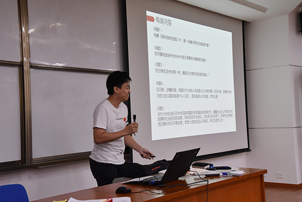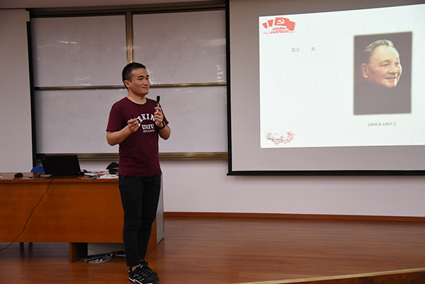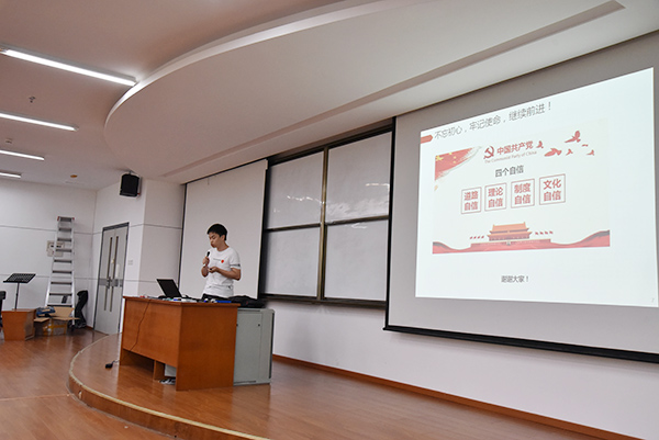 本次主题班会邀请了2015级至2019级各年级的班干部上台为大家进行了授课分享。2015级学习委员薛刚从民生、科技、体育、军事以及深圳城市发展五个维度,带领大家回顾了新中国成立70年来的“高光时刻”,并介绍了共和国勋章授予者的伟大贡献,激励在场同学们用专业知识和实际行动建功新时代,向祖国告白。2016级班长陈城杰通过理论学习与具体实例带领大家学习了中国特色社会主义道路上的“四个自信”,并且针对“NBA”事件与同学们进行了深刻问答和探讨。2017级学习委员徐红坤则以党和国家的卓越领导人—邓小平同志为切入点,为现场同学简述了邓小平同志的伟人历史,从他为民族独立、人民解放和社会主义建设奋斗的伟大贡献以及与普通人一样的情感活动,立体还原了伟人的多面人生。2019级班长冯源以“红船精神”到“北大深圳”为主题,与大家重温红船精神内涵的同时,将历史与新时代相连接,深圳与北大相连接,从时间和空间两个维度,为大家展现了“红船精神”在当今的诠释,强调了作为北大青年学子的责任与自信。
