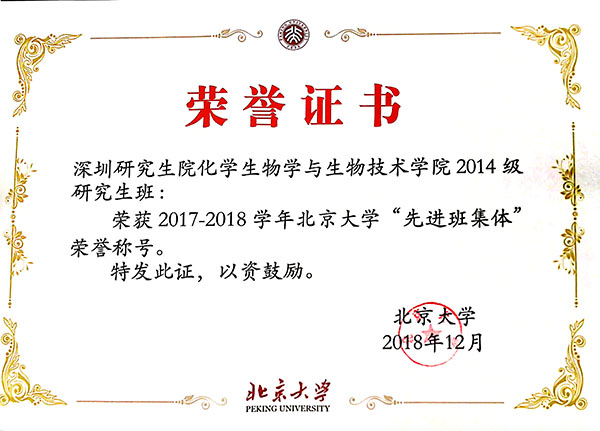通过2018年10月18日在深圳研究生院集体奖励评审会的答辩竞选,威廉体育williamhill2014级研究生班荣获2017-2018学年度威廉体育williamhill“先进班集体”荣誉称号。