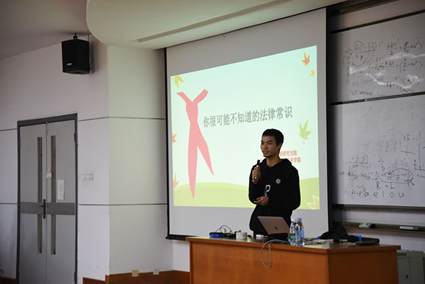 最后,团支书刘助润、蔡尚斌向同学们宣传普及法律法规常识。两位团支书刘助润、蔡尚斌主要从校园安全、防诈骗、出境出游、证件办理等方面向同学进行普法教育,切实有用,关注度高。宣讲之后的法律知识有奖竞答环节中,有趣的问答题目和8杯奶茶的奖品设置双管齐下、吸引全场同学们积极举手参与抢答。
