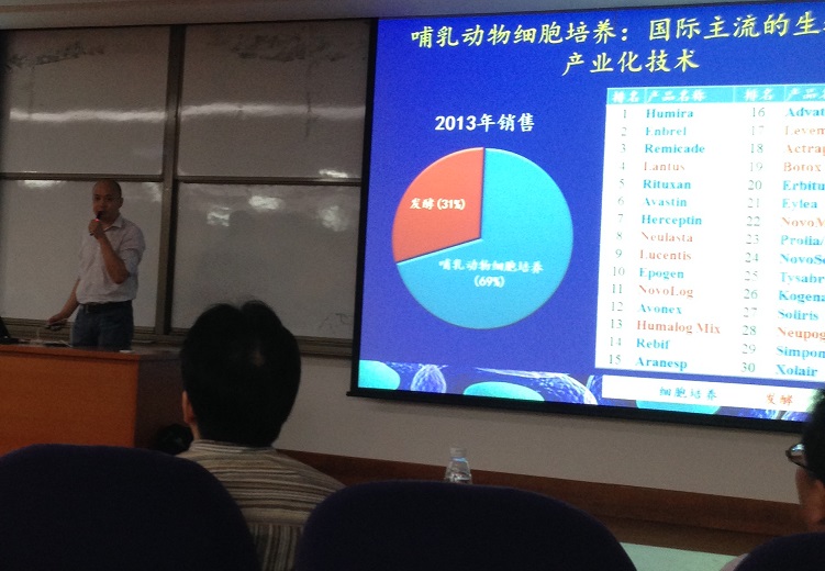 2014年6月5日,应公司赵劲教授邀请,沈阳药科大学深圳生物药物研究院经理马宁宁教授来访公司,并给全院师生带来一场精彩的报告,题为“生物药物的翻译后修饰及其对成药性的影响”。马教授的报告详尽介绍了生物药开发过程需要考虑的翻译后修饰,主要包括折叠、糖基化、羟基化、硫化、去酰基化等。翻译后修饰的影响因素多种多样,包括涉及宿主细胞选择、细胞株筛选、培养基组分及细胞培养条件等。马教授还为我们讲解了翻译后修饰对生物药成药性的影响、及部分控制手段。马教授主要致力于多肽、蛋白类药物的研发,他的研究内容激起了公司研究小分子药物的教授们浓厚的兴趣,讲座现场进行了热烈而详尽的探讨。