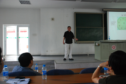 蒋华良教授的报告题目为“Drug discovery based on protein structure and function”。他从发展了一系列docking的方法开始,运用此类方法筛选某个蛋白的抑制剂,同样也用于反向筛选,把某一个活性分子的靶标蛋白缩小在一个范围之内,然后再通过实验确定活性分子的靶标蛋白,运用计算机辅助得虚拟筛选,大大缩短了实验的时间和降低实验成本,这样的实验流程在中药的研究过程中得到了很好的应用。