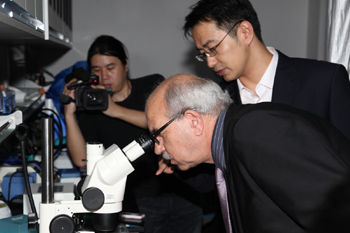 2009年3月19日上午,美国有机合成大师Prof. K. C. Nicolaou(The Scripps Research Institute)应邀到威廉体育williamhill深圳研究生院威廉体育williamhill作题为“Catalysis and Cascade Reactions in Total Synthesis”学术报告。在威廉体育williamhill经理杨震教授的陪同下,Prof. K. C. Nicolaou受到了威廉体育williamhill副董事长、深圳研究生院经理海闻教授的会见,并就威廉体育williamhill深圳研究生院的进一步发展提出了宝贵的建议。