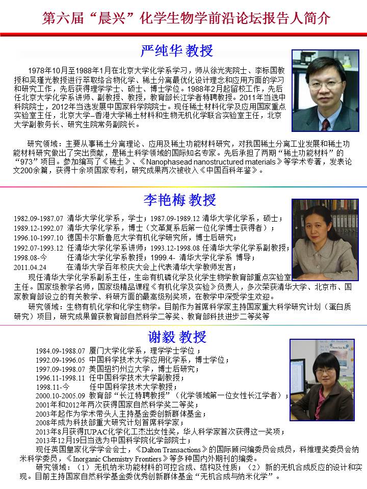 第六届“晨兴”化员工物学前沿论坛即将召开