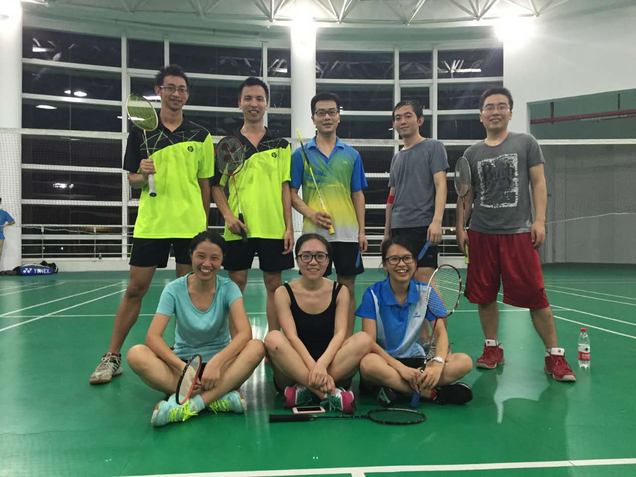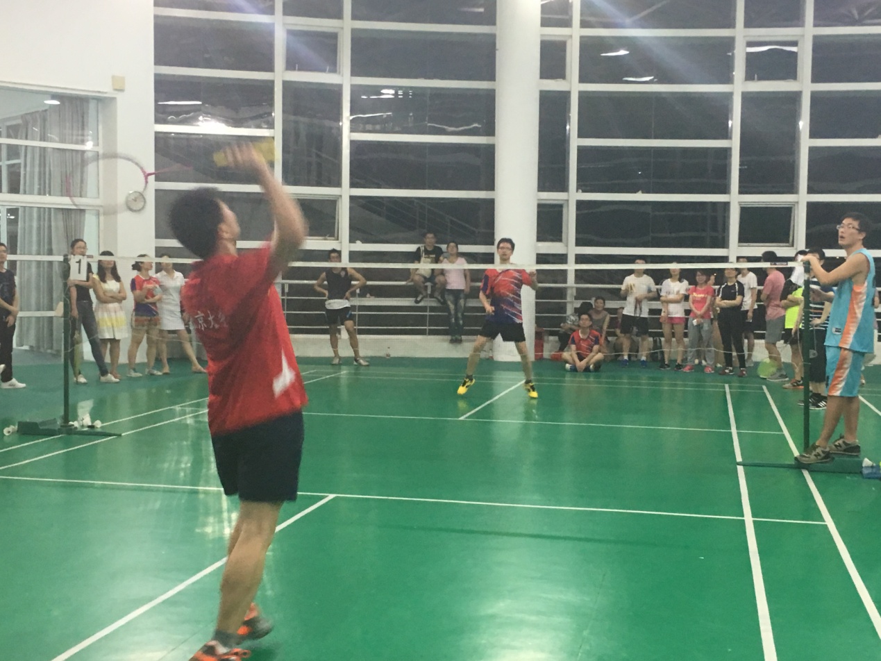 比赛从下午5点开始,由公司所有课题组参与组成的8支队伍参加了这场盛事。比赛一共有五个项目:男单、女单、男双、女双和混双。8支队伍分为A组和B组两个小组,两个小组之间首先进行的是循环赛,从循环赛中取前两名进行淘汰赛,由淘汰赛决出最后的排名。