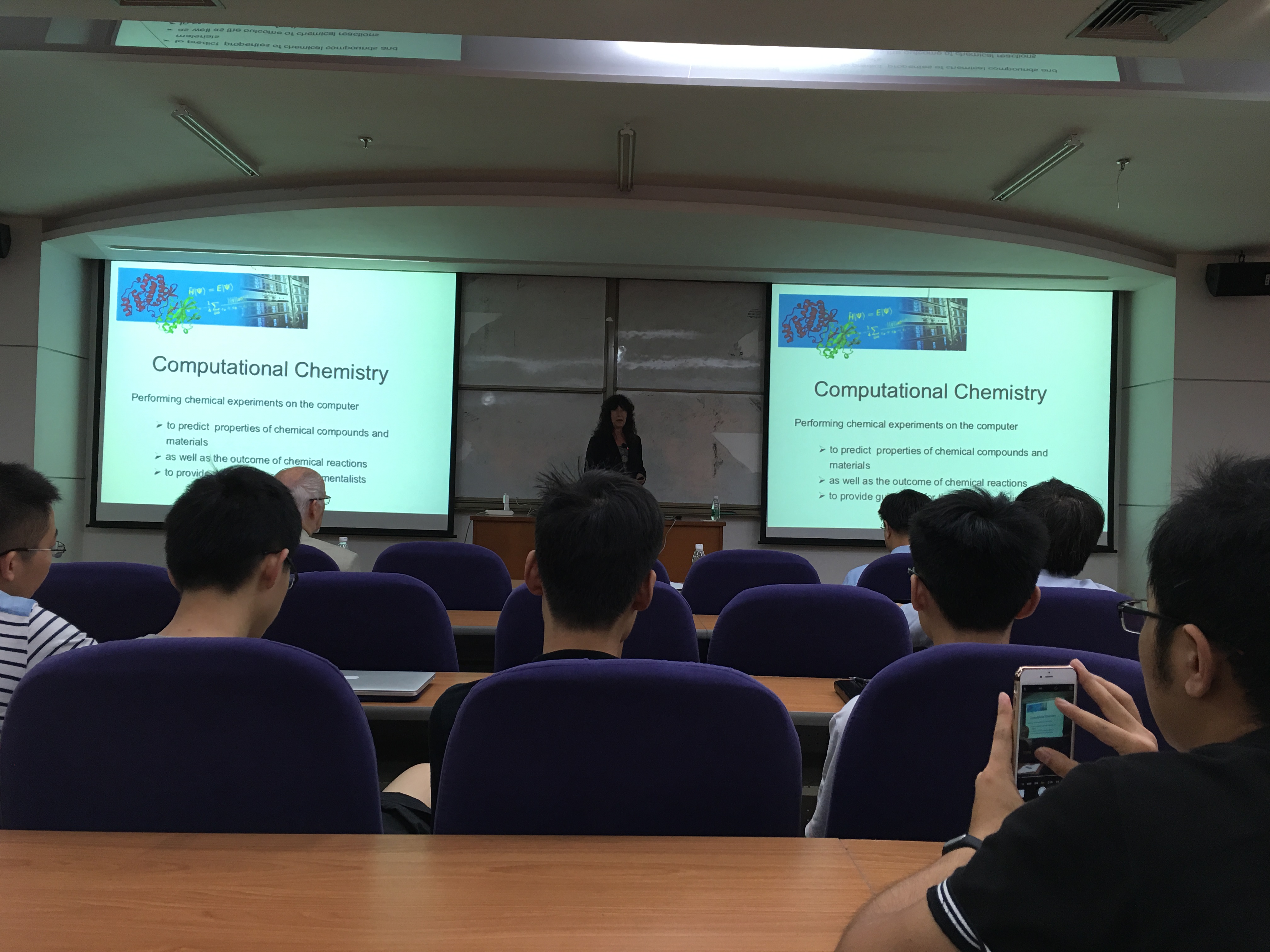 Elfi Kraka教授首先深入浅出地介绍了计算化学的相关概念以及发展,并且指出计算化学已经作为化学科学不可或缺的一门重要分支。而其中,计算机辅助药物设计具有重要意义能够大大较少新药研发的时间和成本,吸引了众多化学家的关注。Elfi Kraka教授课题组借鉴了自然界中烯二炔(enediyne)的抗癌活性的相关研究,指出传统利用烯二炔进行抗癌治疗的思路不可行因为自然界的烯二炔类化合物不能区分正常细胞和癌细胞,无选择性地破坏细胞的DNA。其课题组利用CADD方法,首次对烯二炔类结构进行了结构修饰,使其靶向性进攻癌细胞。这一研究对将来烯二炔类抗癌药物的研发和发展具有重要意义。
