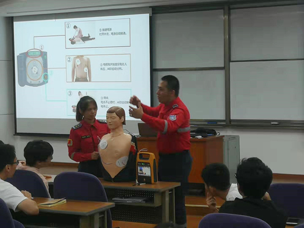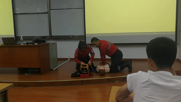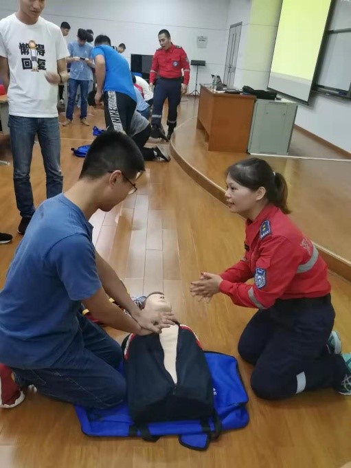 生命安全重于泰山,急救领域的安全问题近年来得到越来越多的重视。为进一步提高公司师生的互救自救素质,2019年11月1日晚,应公司安全教育课赵永娟老师邀请,深圳市救援志愿者服务联合会的李翔等三位急救教练在E-104教室为30余名师生进行了“心肺复苏术”安全急救等技能培训。