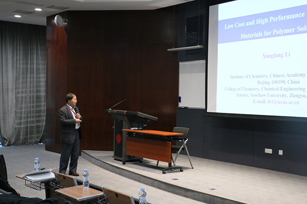 苏州大学李永舫院士作题为“Low Cost and High Performance Photovoltaic Materials for Polymer Solar Cells”的大会报告