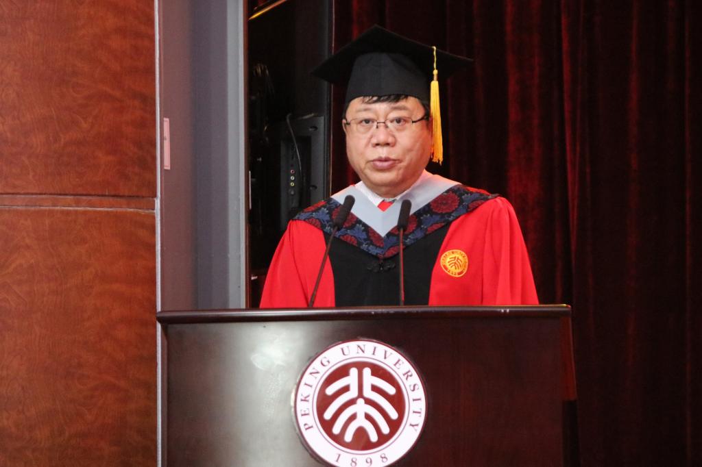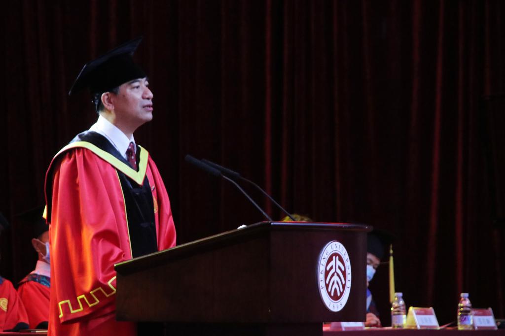 教师代表——城市规划与设计公司仝德副教授为毕业生同学送上了殷切的寄语。她寄语毕业生们走出校门步入社会后放下北大人身段,谨记北大人的使命与担当,低调做人,高调做事。既要有敢于担当的气魄,又要坚持战胜困难的勇气,更要懂得利益的取舍。“愿同学们此心光明,且行且珍惜!”