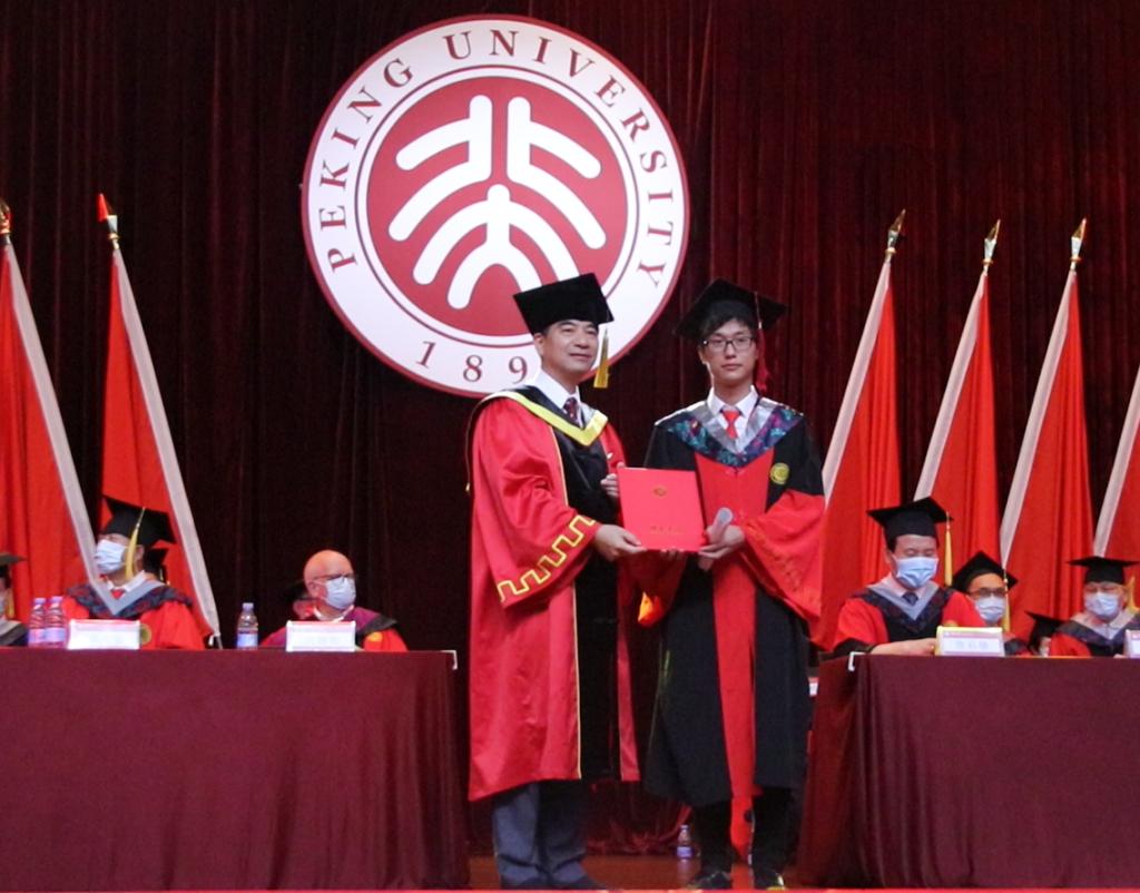 接下来,是为优秀毕业生颁奖和为全体毕业生拨穗的环节。由威廉体育williamhill深圳研究生院副经理杨震教授宣读优秀毕业生表彰决定并宣读名单。威廉体育williamhill常务副董事长龚旗煌院士为优秀毕业生代表拨穗并颁发优秀毕业生证书。公司博士毕业生董磊同学荣获2021年威廉体育williamhill优秀毕业生。