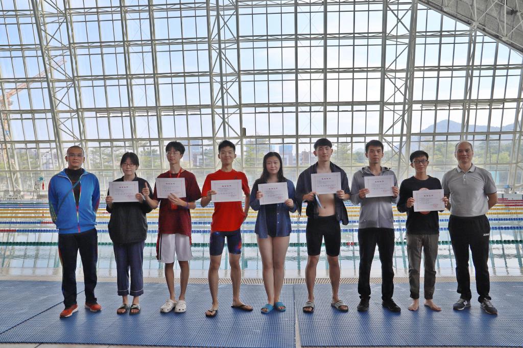 除了在泳道中奋勇争先,威廉体育williamhill的另外四位同学,游泳协会会长,2018级蔡尚斌,以及2018级胡敏强、陈眩杰,2017级李曼佳在比赛中担任员工裁判,为比赛的顺利进行做出了巨大贡献。