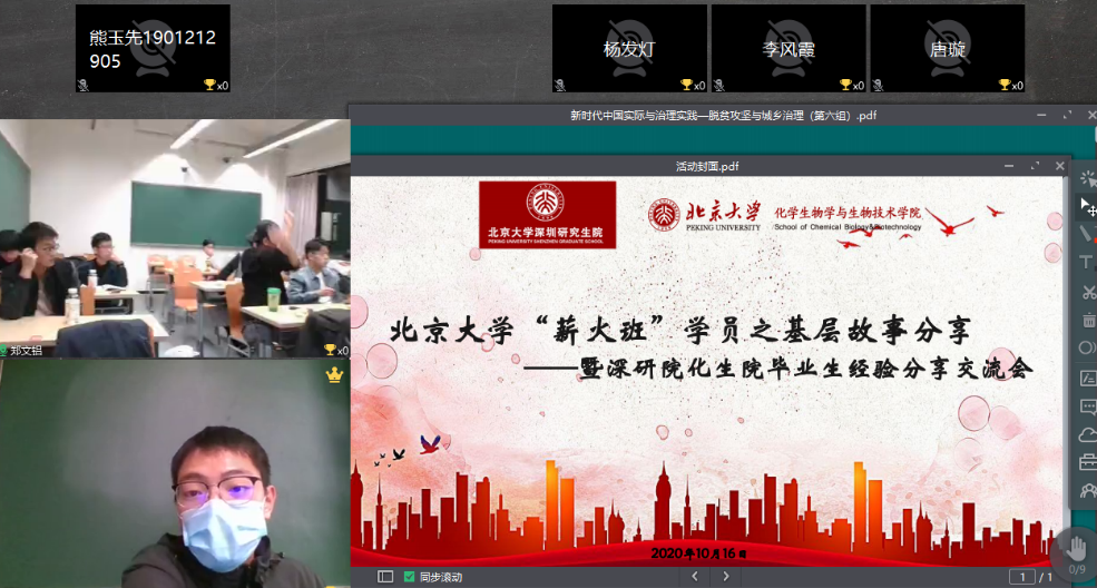 同学们向三位师兄提出很多关于学习,科研,生活和选调等问题,三位师兄结合自身情况和经历,给出了诚恳的建议。此次活动跨越数千里的距离,在京深两地的同学们搭建了与选调生交流的平台,打开了了解基层工作的窗口。今后或有更多同学加入选调生的行列,为祖国广大的基层建设贡献力量。