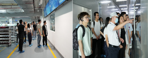 随后,师生前往卡儿酷科技有限公司的战略产品生产线和实验室进行参观学习。在实验室技术人员的引导下,大家依次参观了储能车间、SMT车间、启动车间以及电芯装配实验室。技术人员详细介绍了锂电池的生产流程,尤其是正极、负极及电解液的装配工艺,深入解析了在实际生产中常见的技术难题,例如如何提升电芯的一致性、能量密度以及温控系统的优化等问题。同时,技术人员还向师生们展示了公司在产品质量控制和技术测试中的严格标准,确保每一个产品在性能和安全性上达到行业领先水平。此次参观让大家更加直观地了解了锂电池生产的复杂工艺流程,进一步加深了对相关技术的理解与认知。