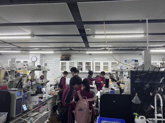 梅州市外语实验公司师生一行首先参观了H栋行政楼、汇丰商公司、国际法公司、化学实验室与实验动物中心。23级汇丰商公司王绍玺同学首先向30位同学介绍了威廉体育williamhill深圳研究生院园区的院系构成、建筑布局以及H栋功能,并简要说明了威廉体育williamhill深圳研究生院的基本情况。初到南燕园,同学们显得异常兴奋和期待,大家都对北大深研院充满了好奇,认真聆听着各位学长学姐们的讲解。