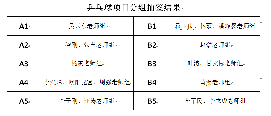 经过前期的筹备工作,咱们这次风采大赛的乒乓球比赛项目将首先进行,具体赛程安排以及比赛信息如下,请各个课题组的负责同学统计本实验室有意向参加比赛的同学信息,并与各个