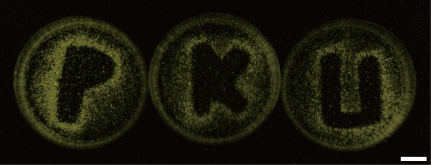 萤火虫萤光素酶中529位的赖氨酸残基在萤光素酶催化发光过程中起到了重要的作用,利用光保护的赖氨酸类似物(ONBK)替代这个重要的赖氨酸残基,可以使萤光素酶完全失去酶活。再利用低强度的紫外光(365nm)照射进行脱保护重新生成自由的赖氨酸残基,恢复萤光素酶的活性。这种方法可以对萤光素酶的活性进行时空调控,并且这种低强度的光照不会对细胞产生损害。将这种光控萤光素酶表达在活细胞的细胞质中并用低强度紫外进行光照,可以对活细胞内的ATP浓度随时间的变化进行检测。