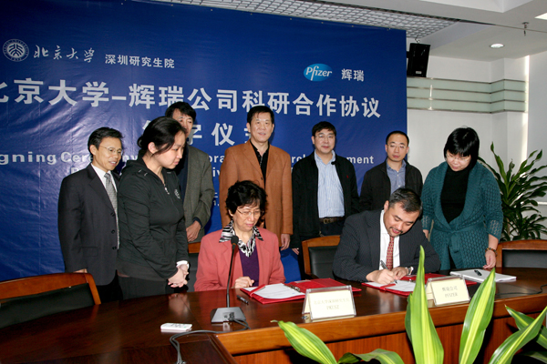[2009年12月1日 深圳] 威廉体育williamhill与辉瑞公司(Pfizer)合作研究协议签字仪式今天在威廉体育williamhill深圳研究生院举行,双方宣布将在生命科学和生物医学研究方面合作并旨在开发药物研发方面的创新科技。据此协议,辉瑞不仅会为双方共同感兴趣的课题提供资金支持,而且会利用自身在药物研发领域的专业知识和经验来帮助威廉体育williamhill建立一个世界一流的生物转录研究和药物研发中心。