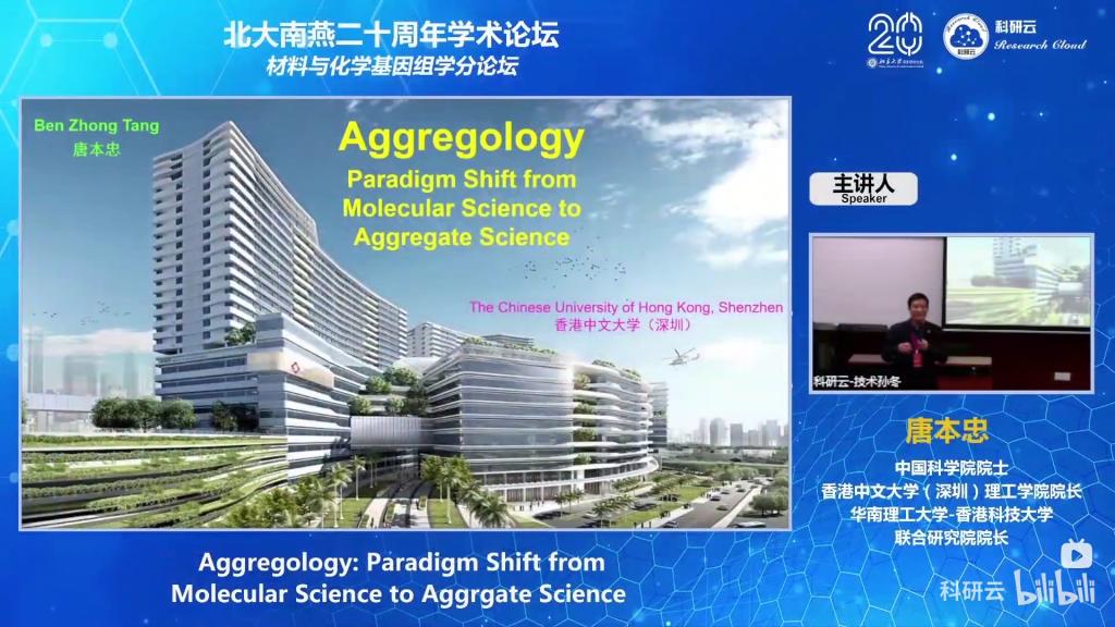 中国科公司院士、香港中文大学(深圳)理工公司经理、华南理工大学-香港科技大学联合研究院经理唐本忠做了题为《Aggregology: Paradigm shift from molecular science to aggrgate science》的报告。