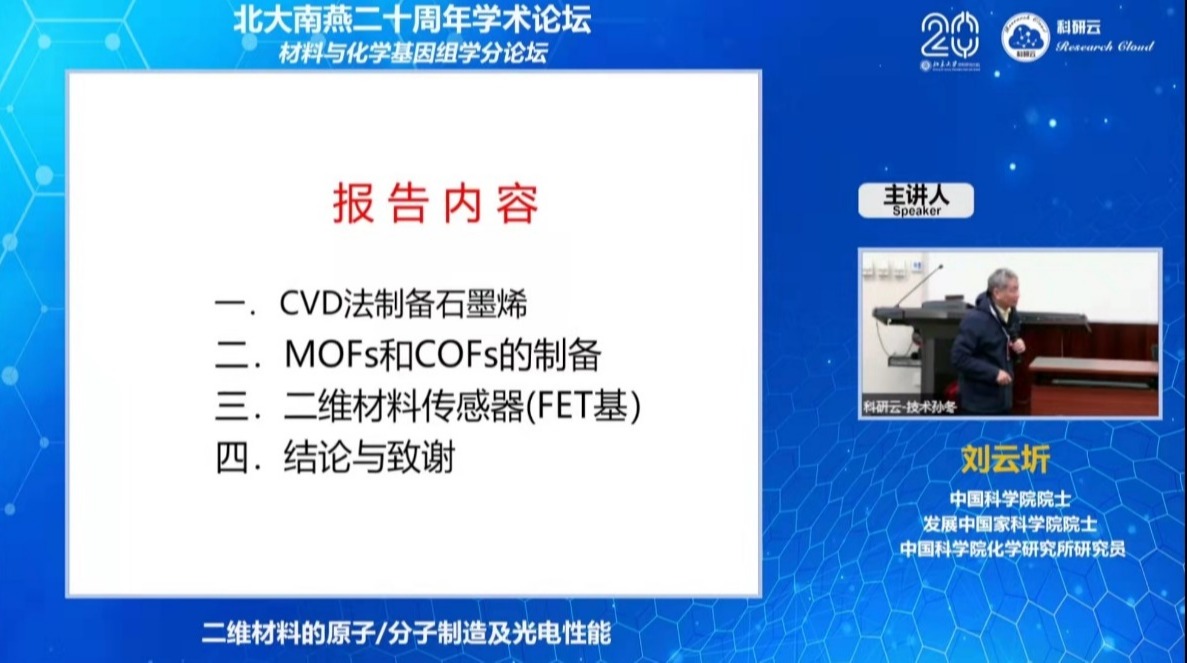中国科公司院士、发展中国家科公司院士、中国科公司化学研究所研究员刘云圻做了题为《二维材料的原子/分子制造及光电性能》的报告。