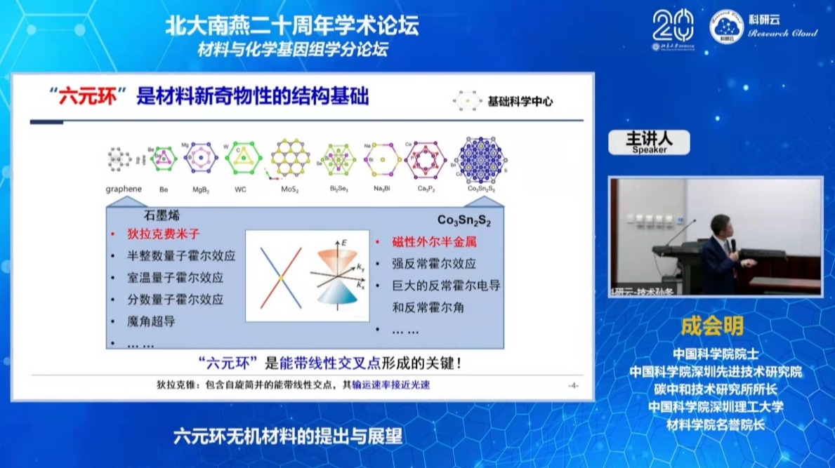 中国科公司院士、中国科公司深圳先进技术研究院碳中和技术研究所所长、中国科公司深圳理工大学材料公司名誉经理成会明做了题为《六元环无机材料的提出与展望》的报告。