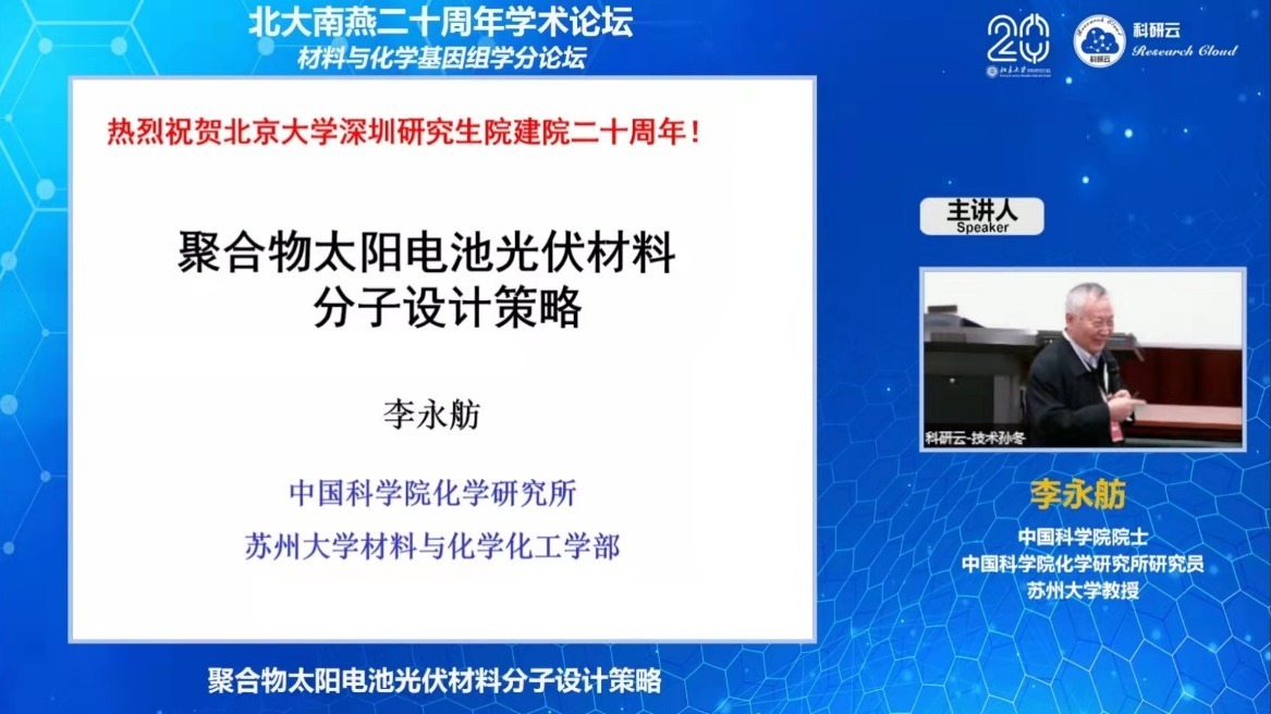 中国科公司院士、中国科公司化学研究所研究员、苏州大学教授李永舫做了题为《聚合物太阳能电池光伏材料分子设计策略》的报告。