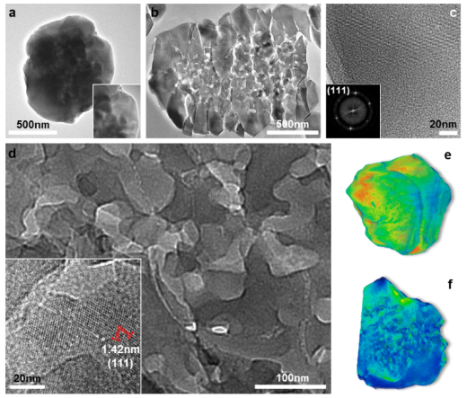 图1. 内部包含层级三维孔道的核壳结构Y型分子筛的透射电镜及三维重构图