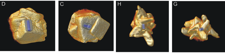 除了沸石分子筛的层级结构制备,小分子调节致孔策略还被拓展至金属有机框架材料。利用有机小分子与无机框架的相互作用,理论计算证明其与表面活性剂作用于不同晶面,产生协同作用可有效调控晶面的生长,从而制备了一系列不同形貌、高度分支的类沸石咪唑酯骨架结构。该部分工作以题为 “Shape control in ZIF-8 nanocrystals and metal nanoparticles@ZIF-8 heterostructures” 发表在近期的Nanoscale (IF=7.367)上,并被选用为封面文章。