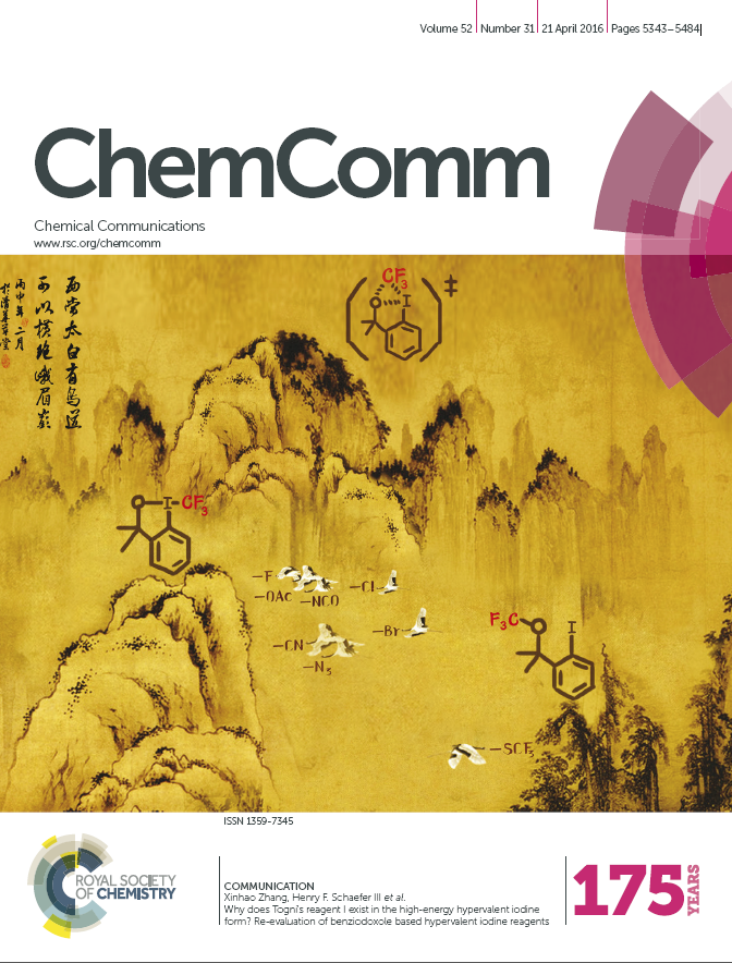 Chem. Comm. 《化学通讯》。(tianyu sun, Xiao Wang, Hao Geng, Yaoming Xie, Yun-Dong Wu, Xinhao Zhang and Henry F. Schaefer, Why Does Togni’s Reagent I Exist in the High-Energy Hypervalent Iodine Form? Re-evaluation of Benziodoxole Based Hypervalent Iodine Reagents,