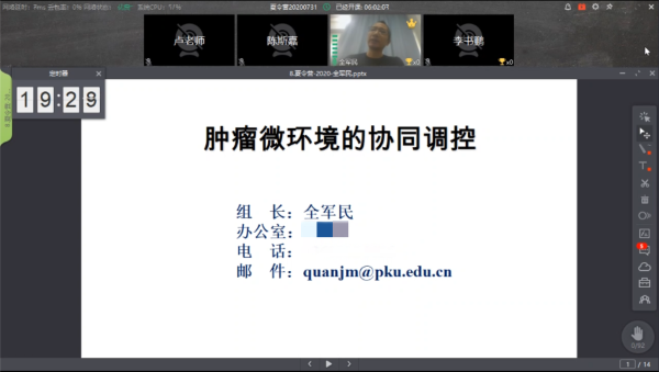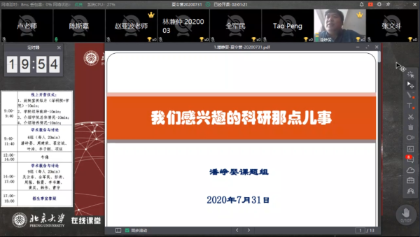 在开营仪式之后,严谨又不失活泼的线上学术报告讨论会拉开了帷幕。本次宣讲共有15位老师做了学术报告或课题组介绍。
