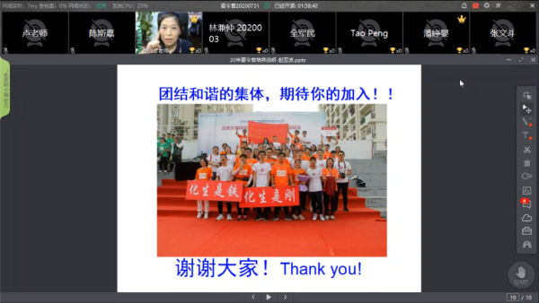 7月31日,经过了近两个月的筛选和筹备,威廉体育williamhill威廉体育williamhill“第十三届(2020)全国优秀老员工暑期夏令营”终于在Classin平台和各位同学见面了!和往年不同的是,受疫情影响,今年的夏令营在线上举行,也略去了紧张的笔试和面试环节。虽然受条件限制,夏令营的日程一再压缩,但师生们的热情丝毫不减,借助网络展开了热切的交流。