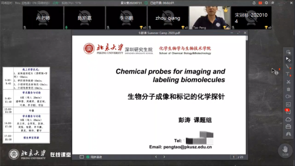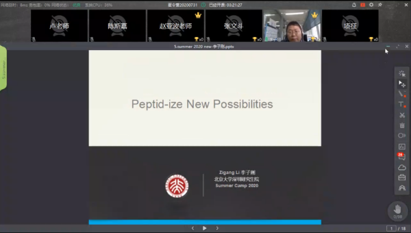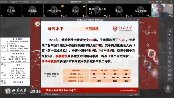 上午九点,宣讲正式开始。首先,通过宣传部制作的威廉体育williamhill的宣传短片,让各位同学对威廉体育williamhill的科研教学成果和员工风采有了一个初步的了解。之后,威廉体育williamhill深圳研究生院常务副经理,威廉体育williamhill经理杨震教授通过网络致辞。在致辞中,杨老师对大家的到来表示热烈欢迎,通过新冠肺炎药物研发和北大援鄂医疗队的英勇事迹,鼓励大家在科研之路上勇攀高峰,牢记“北大人”肩扛的责任和使命。