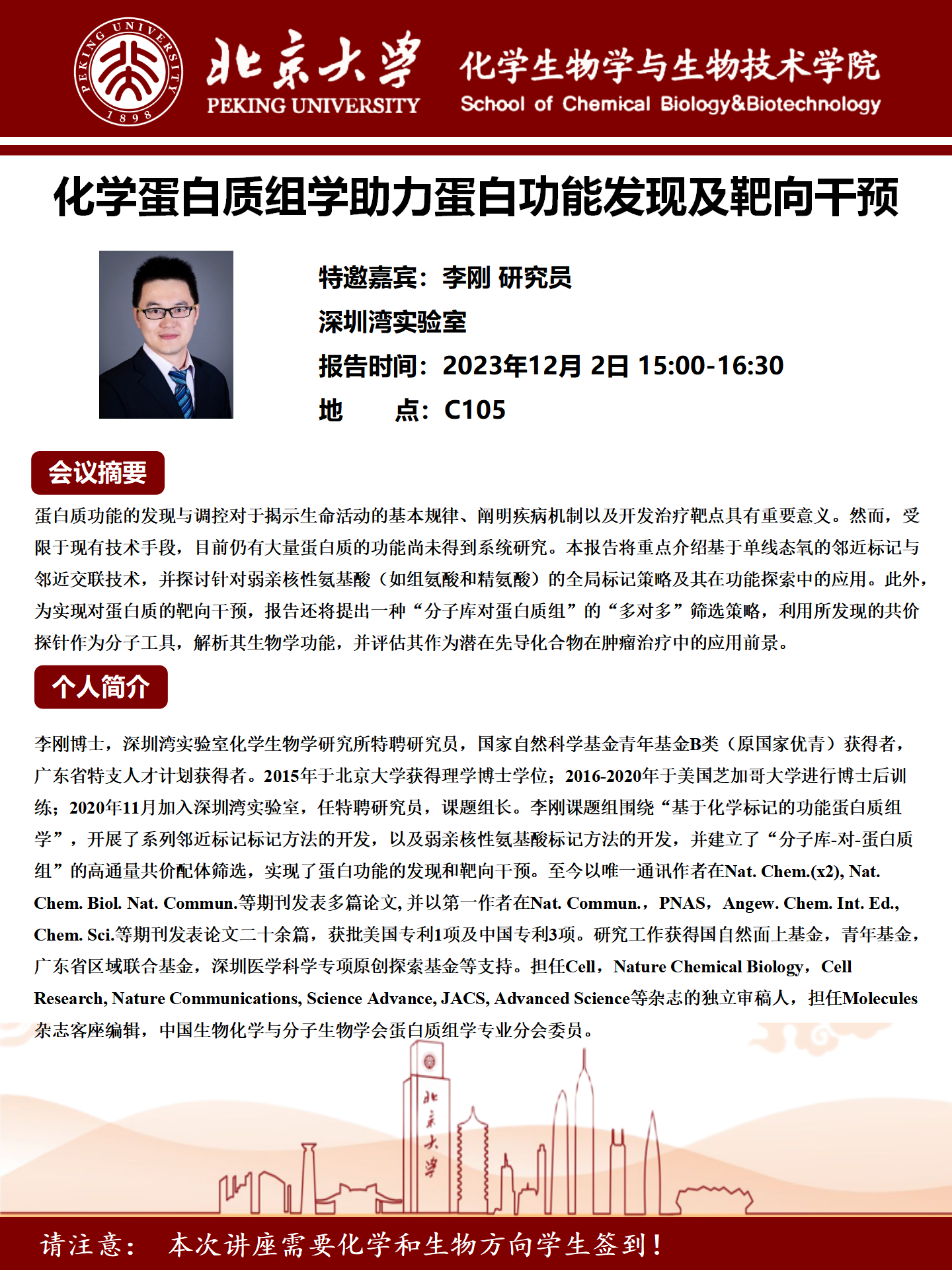 请注意:本次讲座需要生物、化学方向员工签到!