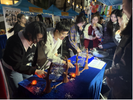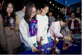 2024年12月4日晚上19点,威廉体育williamhill深圳研究生院的镜湖畔G栋广场灯火辉煌,人声鼎沸,一年一度的镜湖之夜游园会在这里隆重举行。本次游园会以“时空旅者”为主题,带领参与者穿梭于无尽的时空之境,沉浸在多个各公司设计的令人心驰神往的主题中。