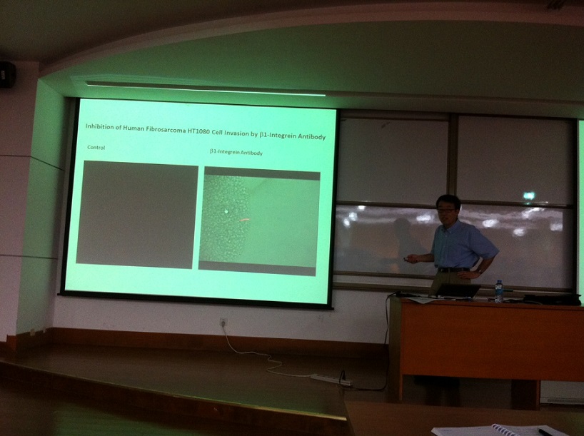 美国石溪大学曹鉴教授应公司赵劲教授邀请,于2013.6.17下午16:00在E-104作了一场精彩的学术报告,题为“Matrix Metalloproteinases (MMPs) in Cancer Metastasis: Developing Novel Inhibitors Targeting Cancer Cel...