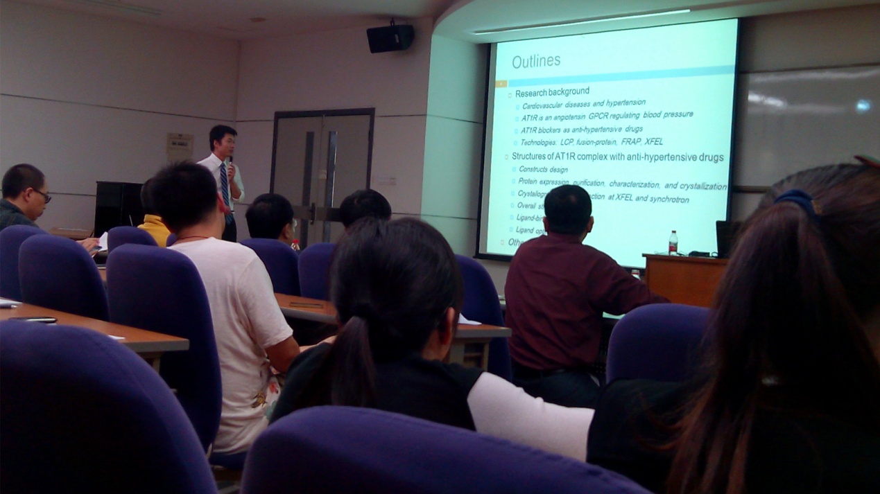 3月30日,来自南加州大学的张海涛博士到公司进行学术交流,并在E-104带来了题为《How Anti-Hypertensive Drugs Target Angiotensin Receptor》的精彩学术报告,为公司全体师生带来了一场饕餮的学术盛宴。